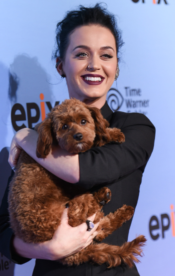 Katy Perry y su tierno perrito llamado Nugget, es un Cava Poo Chon, conocido como “los perros que nunca envejecen”, siendo su principal característica la apariencia, la que siempre será la de un cachorro, siendo la combinación entre tres razas de perros las que le dan ese aspecto y puede llegar a costar cerca de $1,8 millones. Su pequeño la acompaña a todas partes y sus imágenes en Instagram poseen más de 550 mil me gustas.